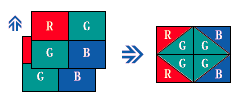 There are three Pro Mode options-all based on Ricoh's innovative Image Enhancement Technology. Pro-L mode shifts the CCD by one pixel to take two shots that a Ricoh-developed algorithm composes into one image. This boosts resolution and definition by 20% without increasing image size. The default Pro Mode uses a Ricoh-developed interpolation algorithm that eliminates "jaggies" when the output resolution increases to 7 megapixels. The resulting image size is 3,072 x 2,304 pixels. Pro-H mode raises output resolution to a maximum 7 megapixels by simultaneously incorporating both the default Pro and Pro-L modes. |