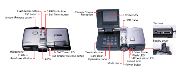 DATA COPY MODE (INTERNAL - EXTERNAL) / Digital Zoom (640 x 480) / MONOCHROME MODE(B&W, Sepia) / AUTO BRACKET / Selectable ISO SENSITIVITY/ POWER SAVE MODE /Remote Control(Optional ) / Date Imprinting ( yy / mm /dd,mm / dd / yy,dd /mm / yy ) |