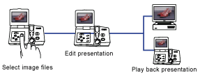 Once you've captured your images, you can edit them on the RDC-i700. Select the desired files you want in the memory. Specify file order and playback time. These are just a few of the easy-to-use editing functions at your disposal. When you're done, play back the presentation on the RDC-i700's own LCD screen, or alternatively, connect the unit to a TV monitor.